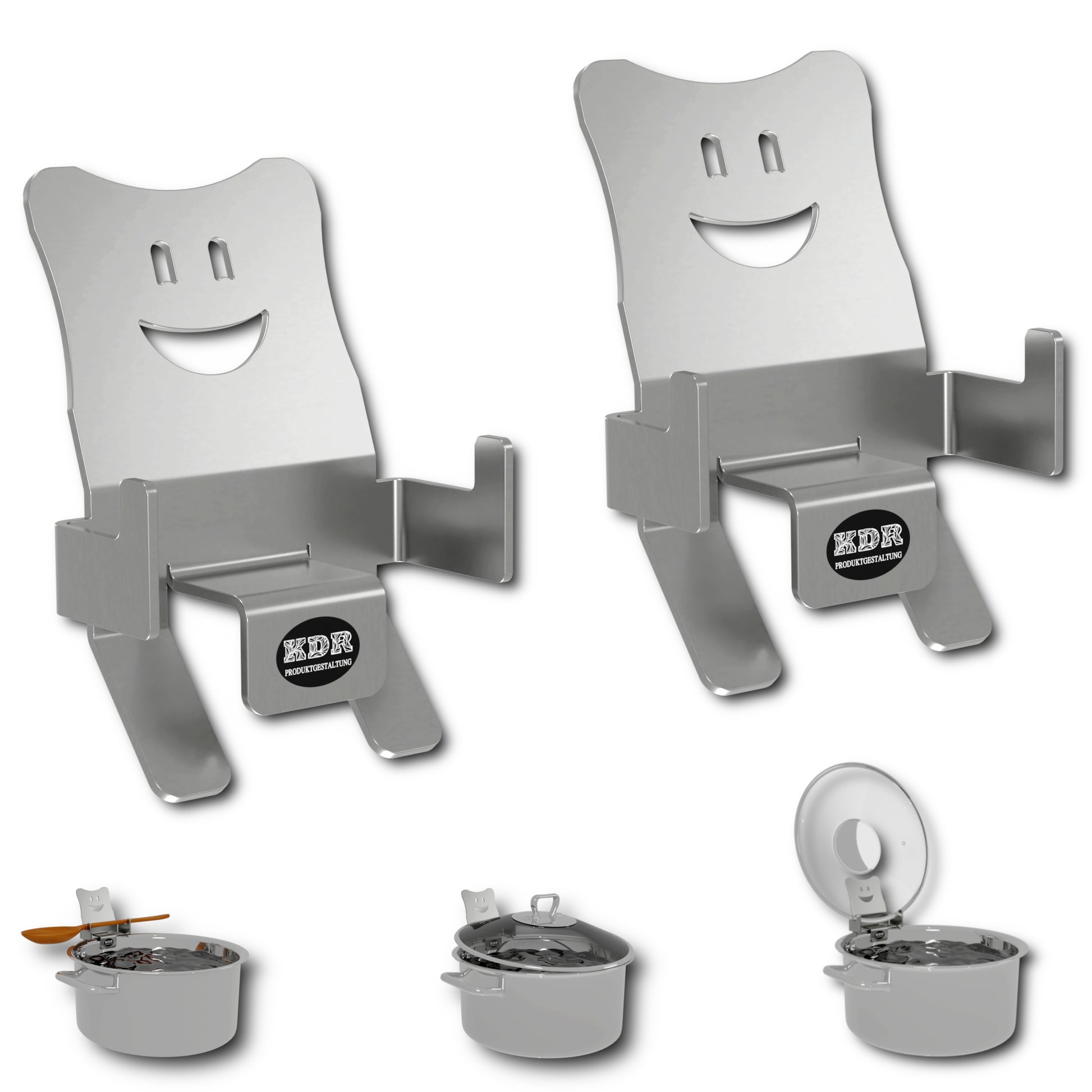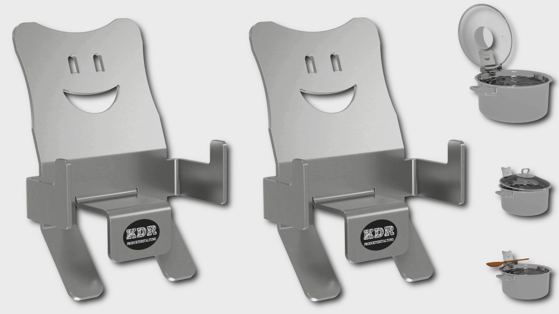 When space is limited while cooking and the lid is constantly in the way, the lid holder from KDR Product Design for order. He offers you a space-saving , hygienic Solution : simply attach the holder to the side of the pot, and the lid will stay securely in place – without any mess. Thanks to the Smiley design This helper also becomes a friendly kitchen charmer.