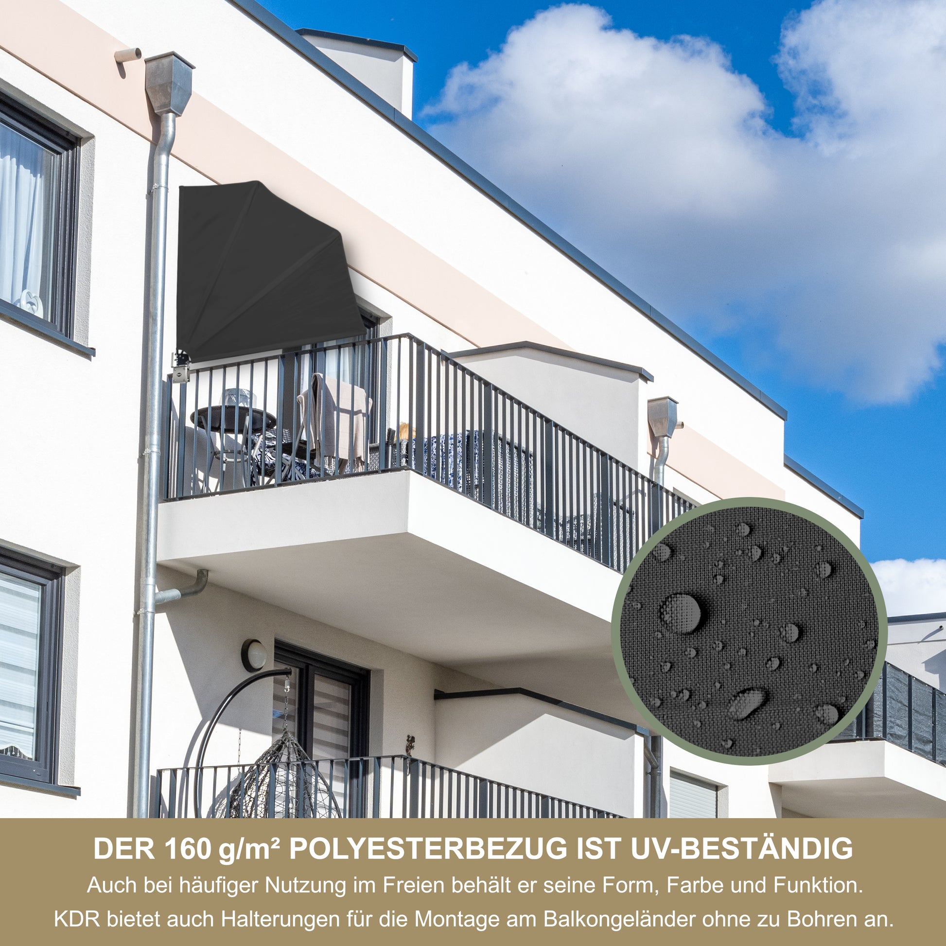 Mehr Privatsphäre, mehr Ruhe, mehr Komfort: Der Balkonfächer 120×120 cm in Anthrazit von KDR Produktgestaltung bietet dir einen effektiven Wind- und Sichtschutz für Balkon, Terrasse oder Garten. Mit klarer Funktion, durchdachtem Design und hochwertigen Materialien ist er die ideale Lösung für alle, die ihren Außenbereich flexibel gestalten möchten – ganz ohne aufwändige Konstruktion.
