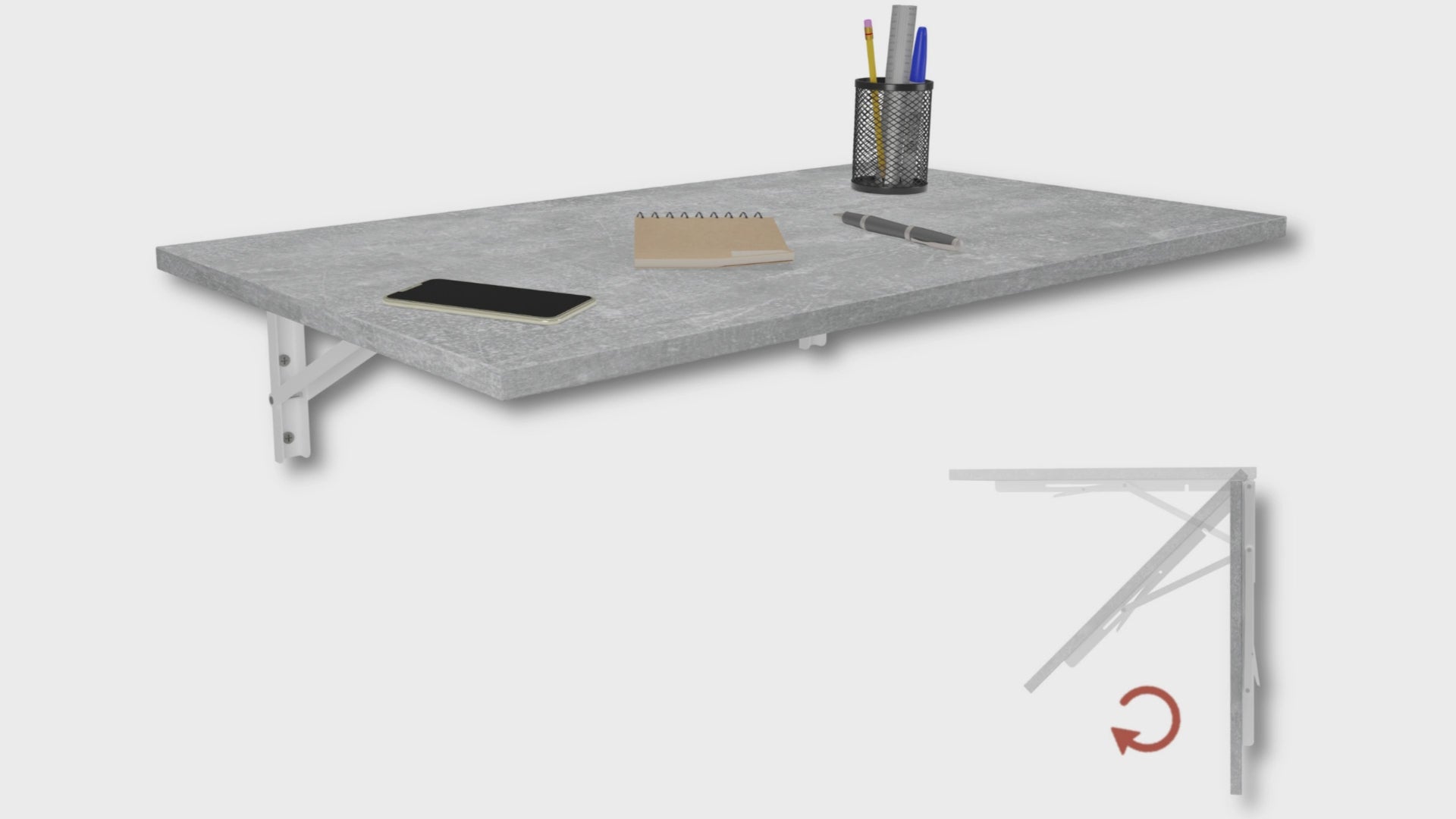 Thanks to the freely selectable mounting height, the table can be adapted to your needs – whether as a standing desk, a classic work table, or a breakfast nook. Everything necessary for wall mounting on concrete, stone, or wooden walls is included.