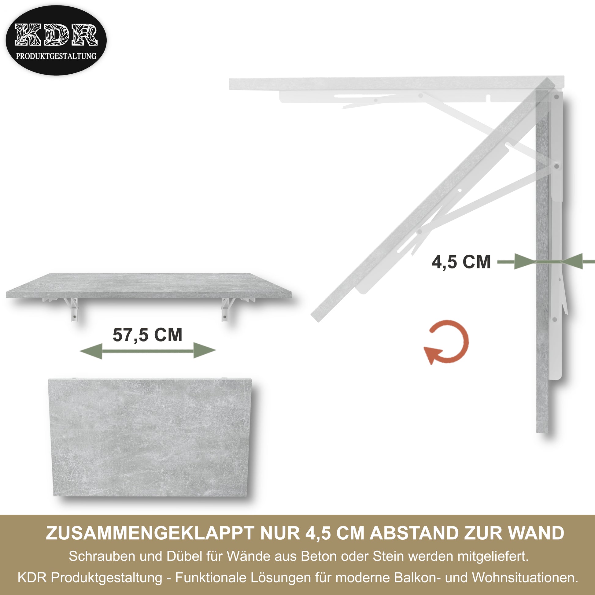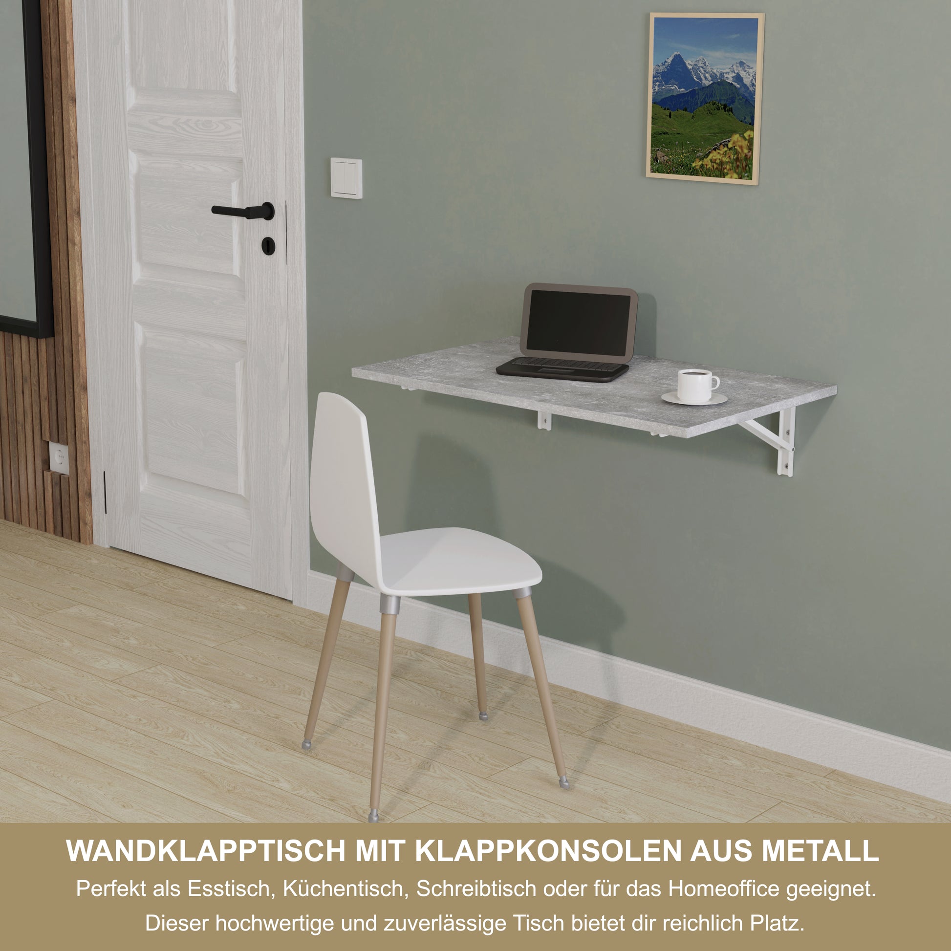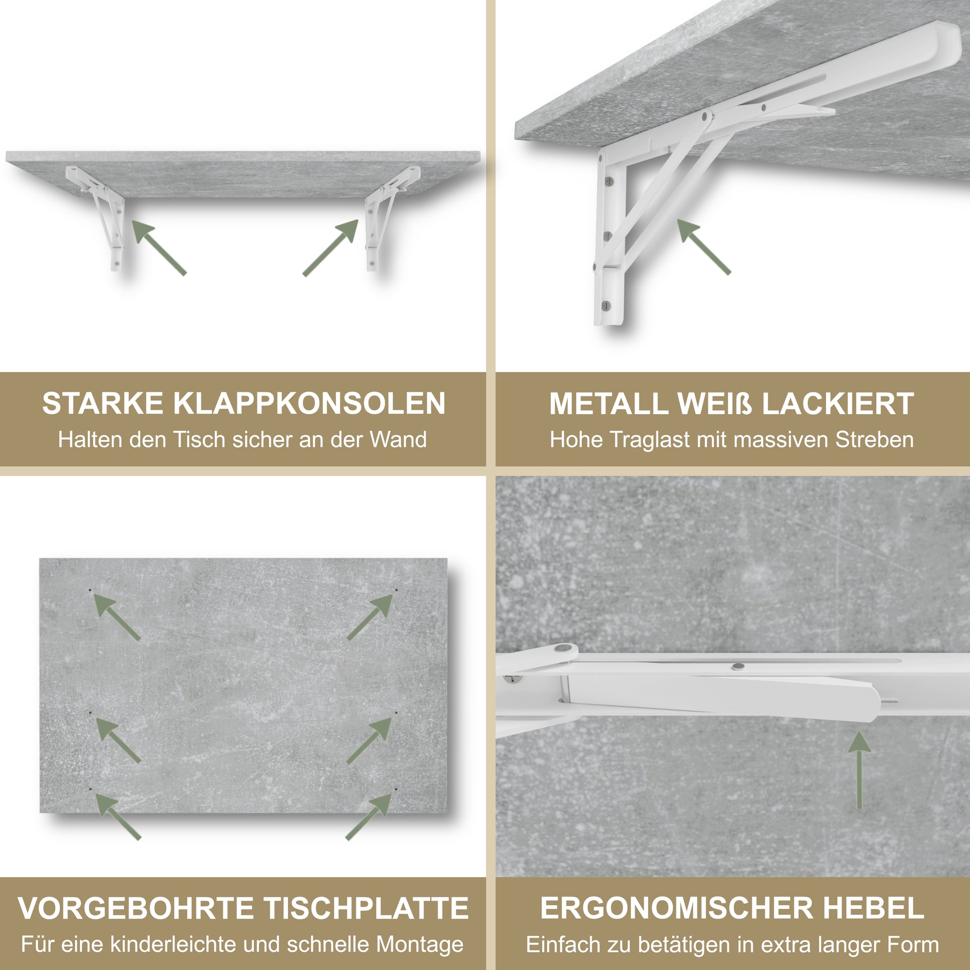 Wall-mounted folding table 80x50 cm concrete look – folding table, desk, kitchen table, dining table, wall-mounted, space-saving