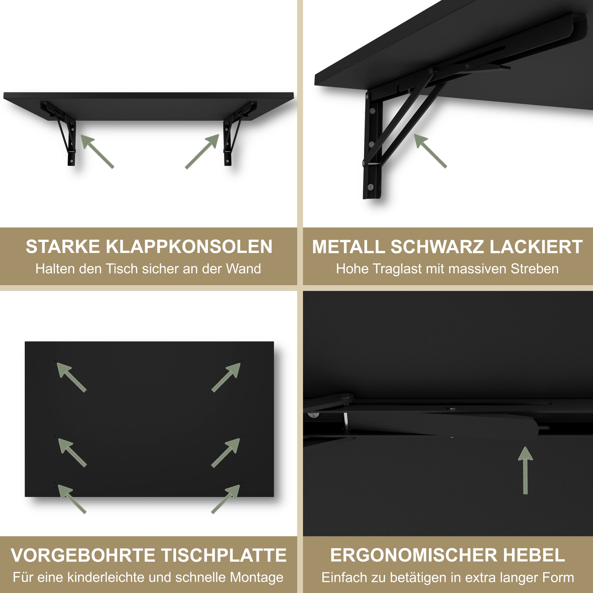 Wall-mounted folding table 80x50 cm black – Folding table, desk, kitchen table, dining table, wall-mounted, space-saving