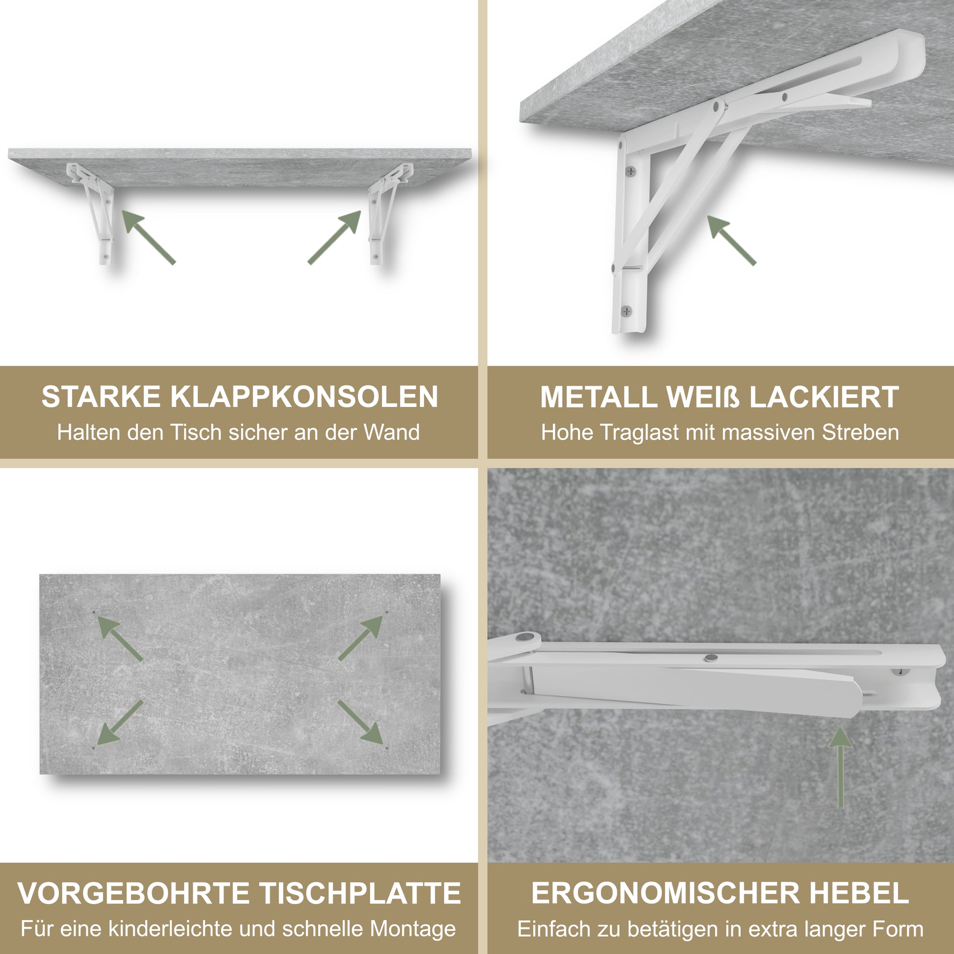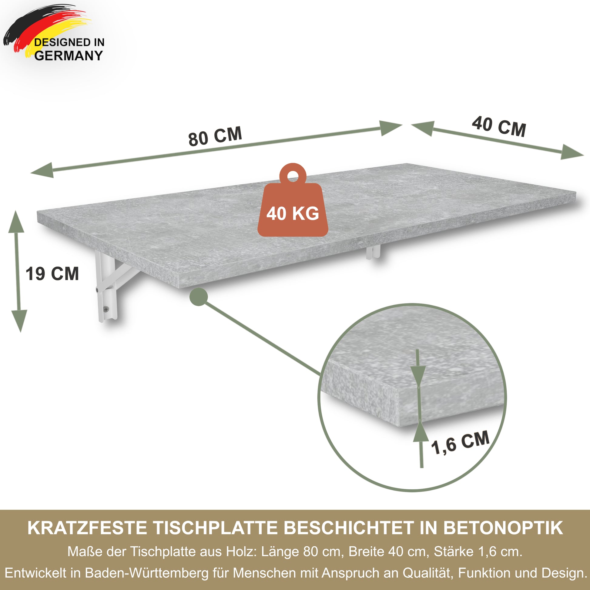 - ROBUST CONSTRUCTION: Ergonomic folding brackets made of robust white metal secure the wall table with a load capacity of up to 40 kg.