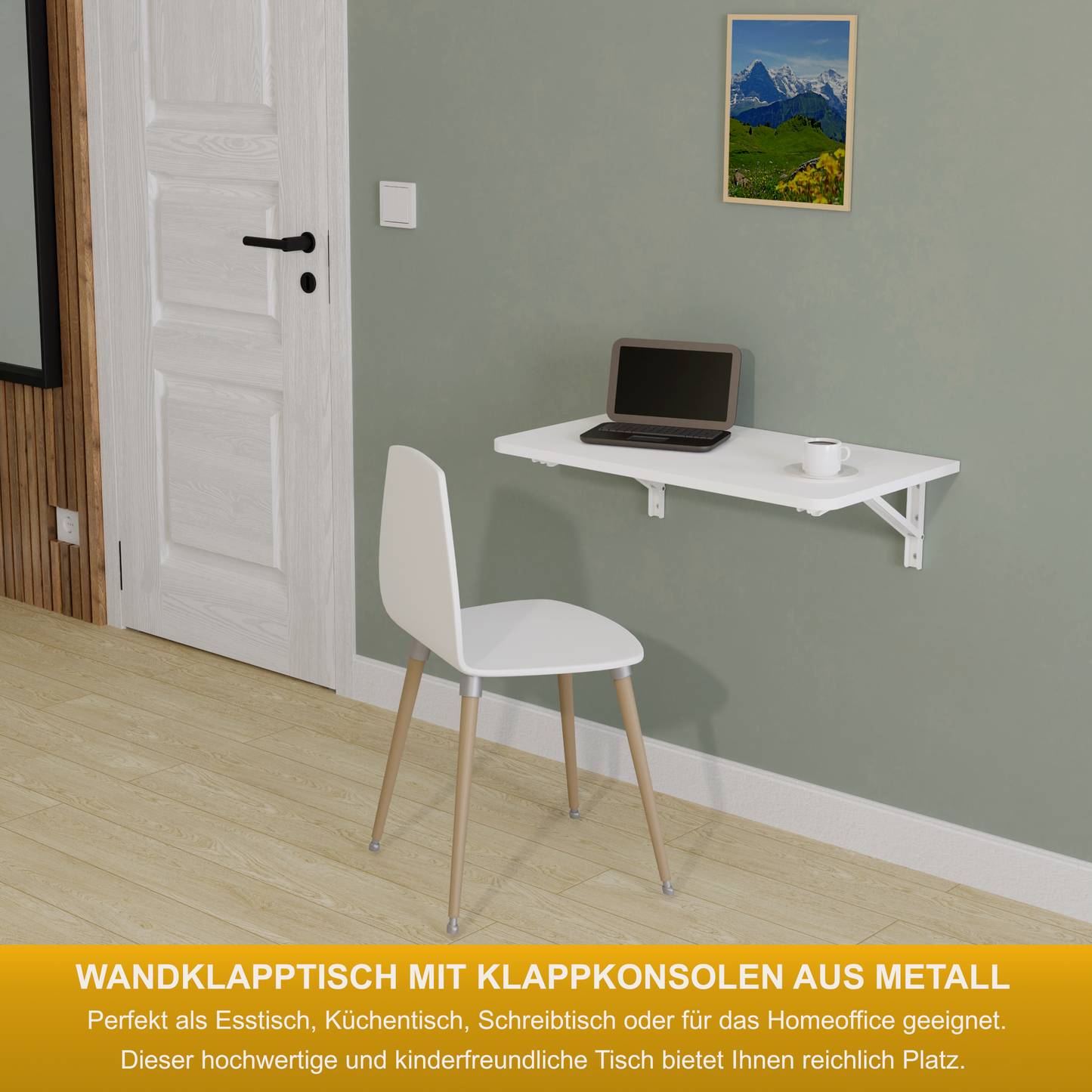 Wandklapptisch 70x40 cm Weiß – Klapptisch, Schreibtisch, Küchentisch, Esstisch, Wandmontage, platzsparend
