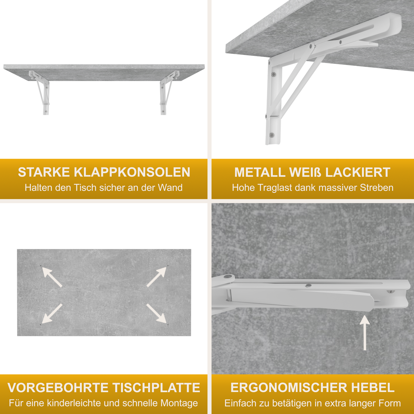 Wandklapptisch 80x40 cm Betonoptik – Klapptisch, Schreibtisch, Küchentisch, Esstisch, Wandmontage, platzsparend