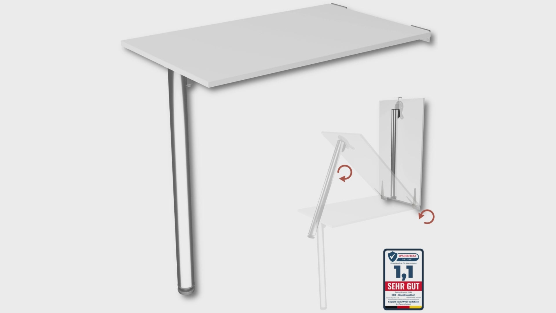 Der Tisch ist stabil konstruiert und auf eine Traglast von bis zu 50 kg ausgelegt. Durch den simplen Klappmechanismus am Tischbein und die flache Wandhalterung ist der Tisch schnell verstaut – ideal für multifunktionale Räume. Die Montage ist unkompliziert – Schrauben und Dübel sind im Lieferumfang enthalten.